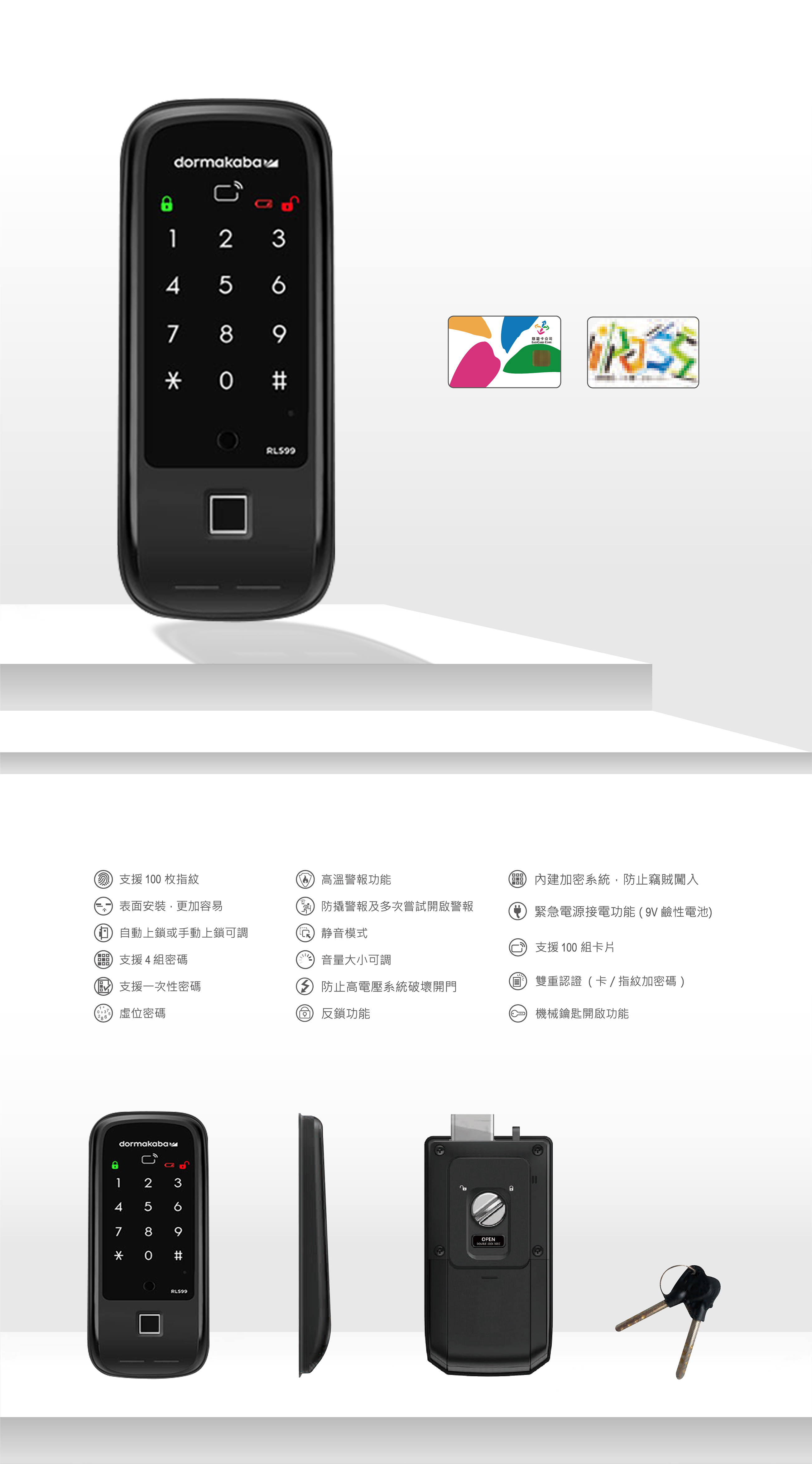 【 dormakaba 】 四合一智慧輔助電子鎖 RL599
